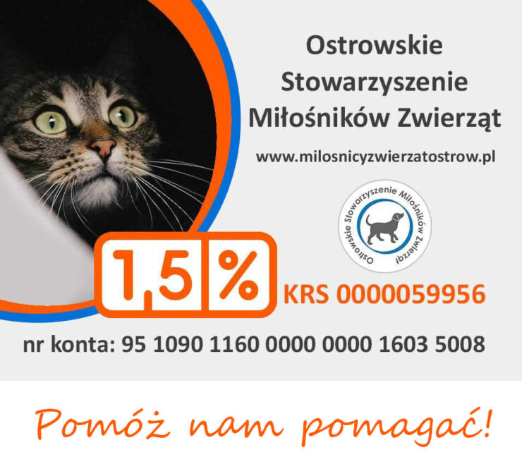 Przekazując 1,5% na Ostrowskie Stowarzyszenie Miłośników Zwierząt, pomagasz nam reagować wtedy, gdy liczy się każda godzina.