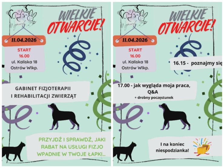 Już od 11 kwietnia 2026 r. przy ul. Kaliskiej 18 rozpocznie działalność Gabinet Fizjoterapii i Rehabilitacji Zwierząt.