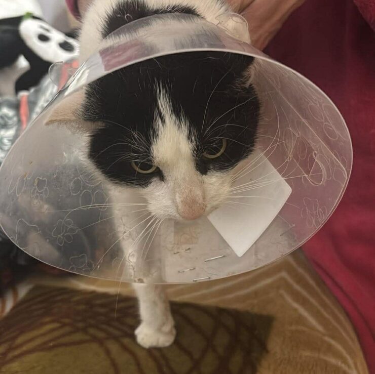 Kot wrócił już do domu i dochodzi do siebie w znanym, bezpiecznym otoczeniu. Jeśli proces gojenia przebiegnie prawidłowo – a na to bardzo liczymy – ma przed sobą szansę na dobre, komfortowe życie. Koty świetnie adaptują się do funkcjonowania na trzech łapach – najważniejsze było zatrzymać ból i ratować życie.