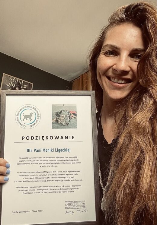 Ogromne podziękowania dla Pani Moniki Ligockiej Pani Monika była osobą, która dała suczce Mili szansę na nowe życie. Przyjęła ją podczytaj więcej