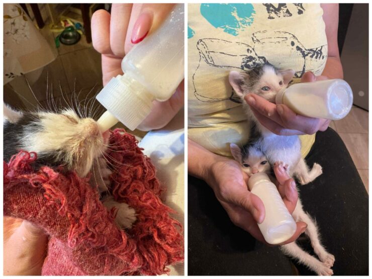 „Masuję im brzuszki po jedzeniu, by nie miały kolki. Na początku były kangurowane – nosiłyśmy je z córką za bluzką, by czuły ciepło i że są potrzebne – to daje siły do walki. Najmniejszy Tobiś już dogonił rodzeństwo i wagowo, i wzrostem, a był prawie połowę mniejszy. I tak mamy: Iskierka – najstarsza oraz oseski: Tobi, Lusia i Ozi.”