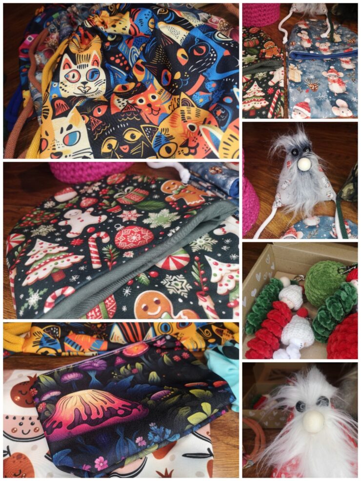Mamy komplety czapka + komin, cudne bombki kręciołki, kolorowe plecaczki, kosmetyczki, pudełeczka na drobiazgi i oczywiście… cudowne skrzaciki ![]()
